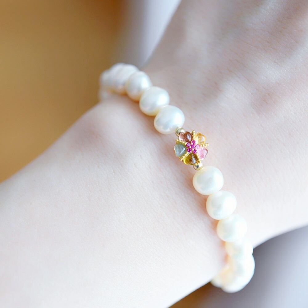 マイナスイオンパワーの石 マルチカラートルマリンとバロックパールのブレスレット 10月/6月誕生石