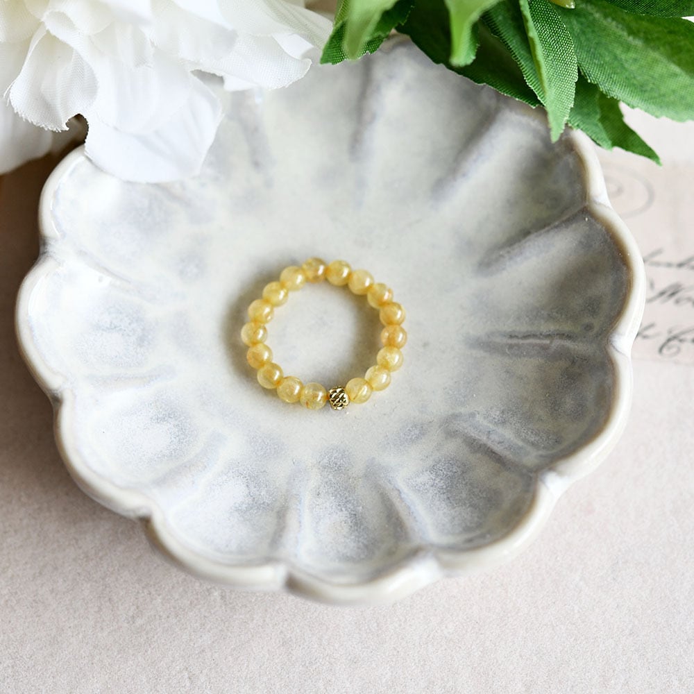 ルチルクォーツの真ん中にゴールドビーズをアクセントした指輪です。