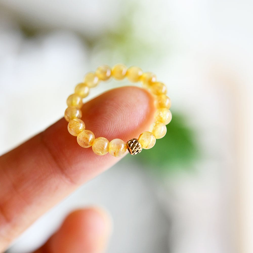 強運 金運 家族円満を象徴する ルチルクォーツの指輪 ピンキーリング 1本 伸縮性タイプ
