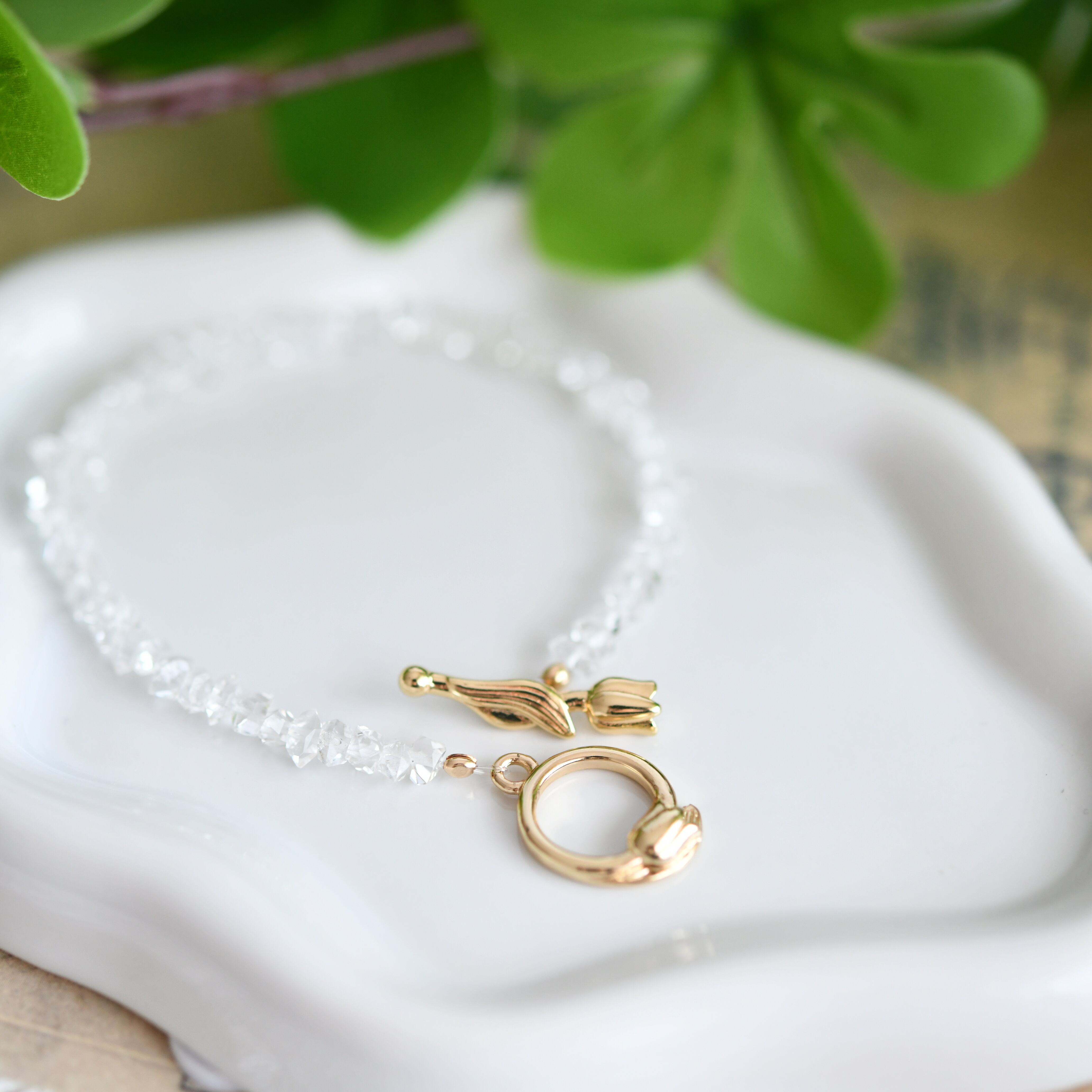 才能の種を咲かせる石 2way極上 ハーキマーダイヤモンドのマンテルブレスレット 重ね付けにも!4月誕生石