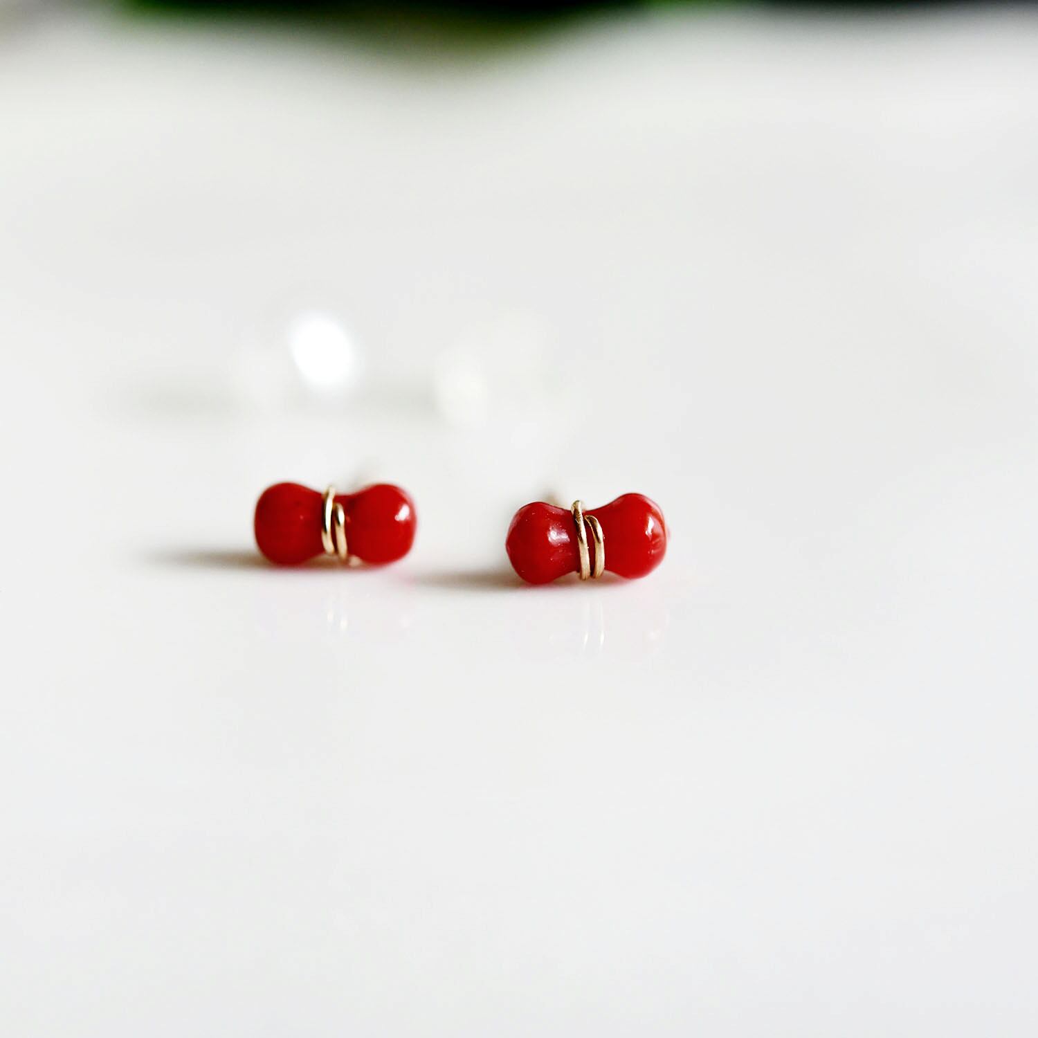 小粒赤サンゴ(コーラル)のネジネジリボンピアス orイヤリング 3月誕生石