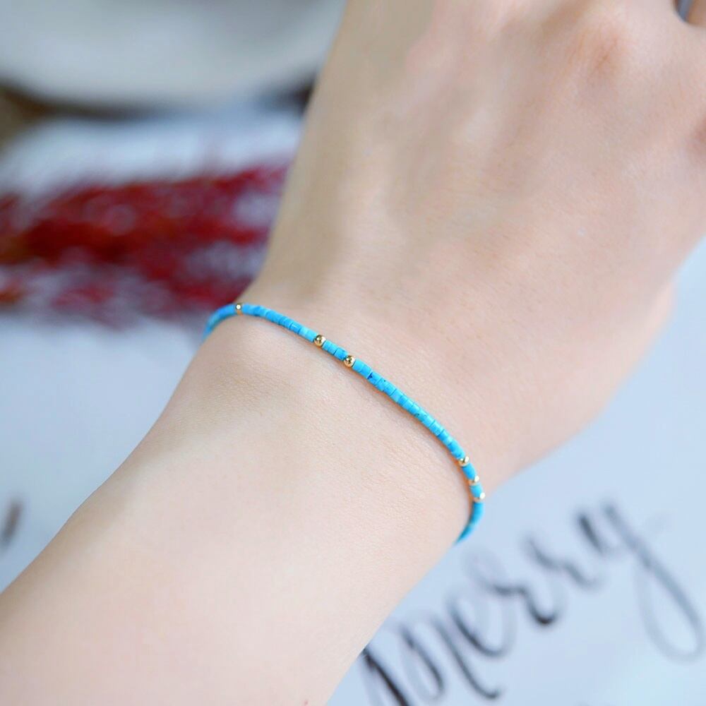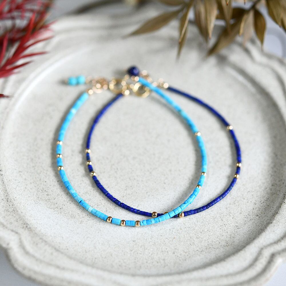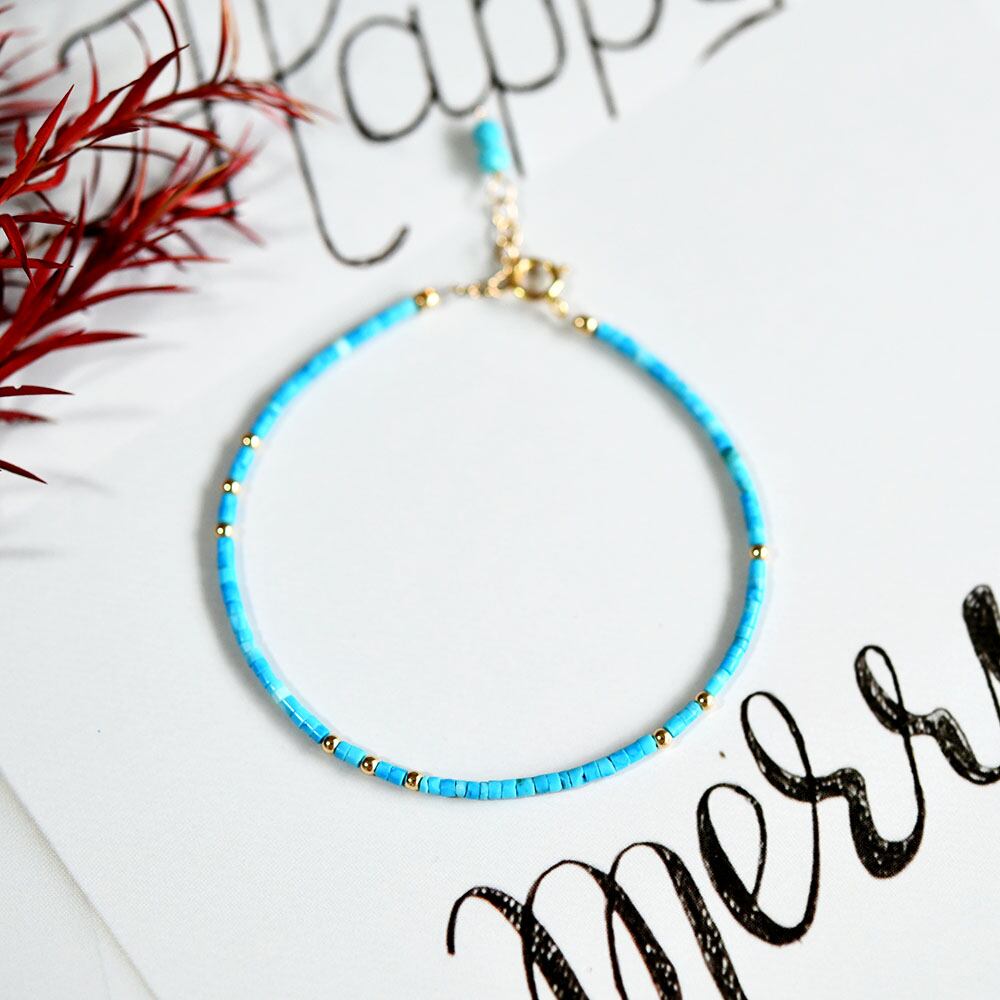 人生の守護石 極細ターコイズのブレスレット 12月誕生石